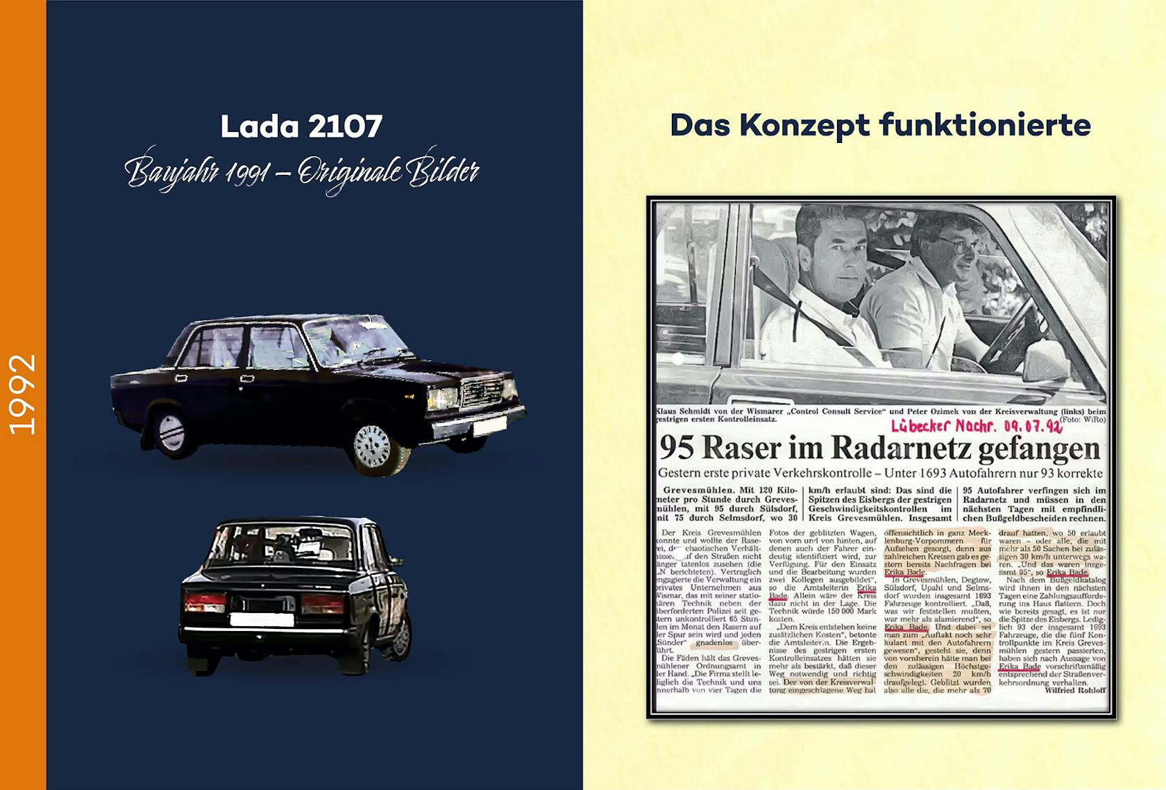 Das mobile Verkehrsradargerät wurde in das erste Messfahrzeug, einem Lada – 2107, im Heck auf der Hutablage eingebaut. Somit konnte aus dem Fahrzeug heraus und auch mit einem Stativ Messungen durchgeführt werden.