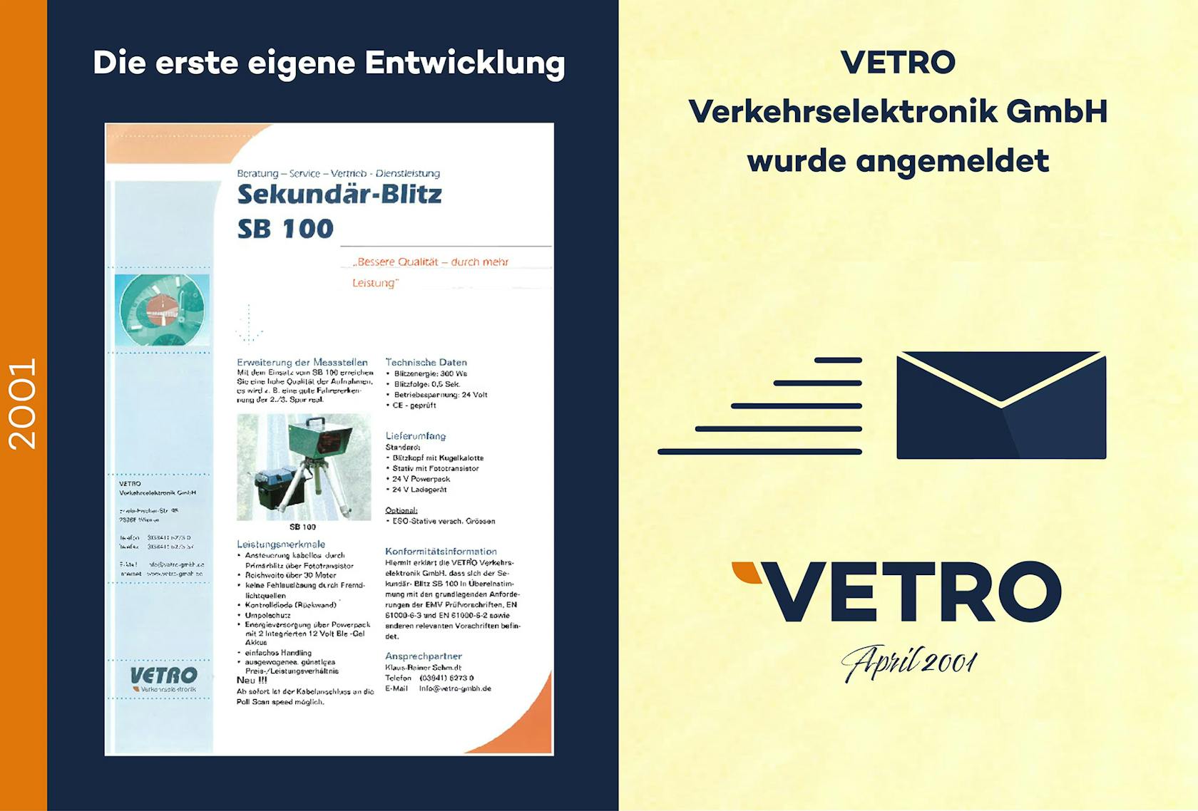 Im April 2001 war es dann so weit, die Firma VETRO wurde angemeldet. Der Name VETRO ist eine Abkürzung und besteht aus der Bezeichnung VerkehrsElekTROnik.